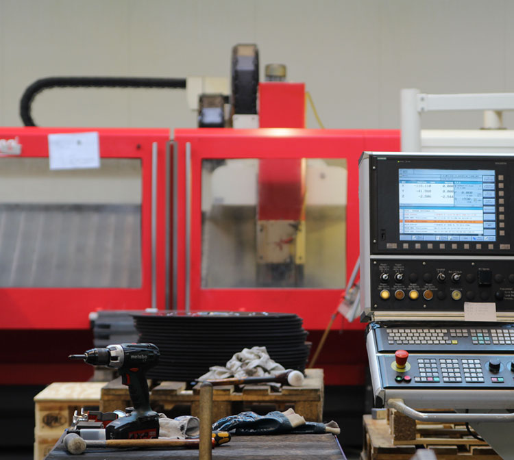 Auf unseren 3- und 5-Achs-CNC-Bearbeitungszentren, Laufwagen- und Pendelschleifmaschinen sowie unseren Sägeautomaten fertigen und bearbeiten wir für Sie Maschinenwerkzeuge und Maschinenbauteile aller Art.