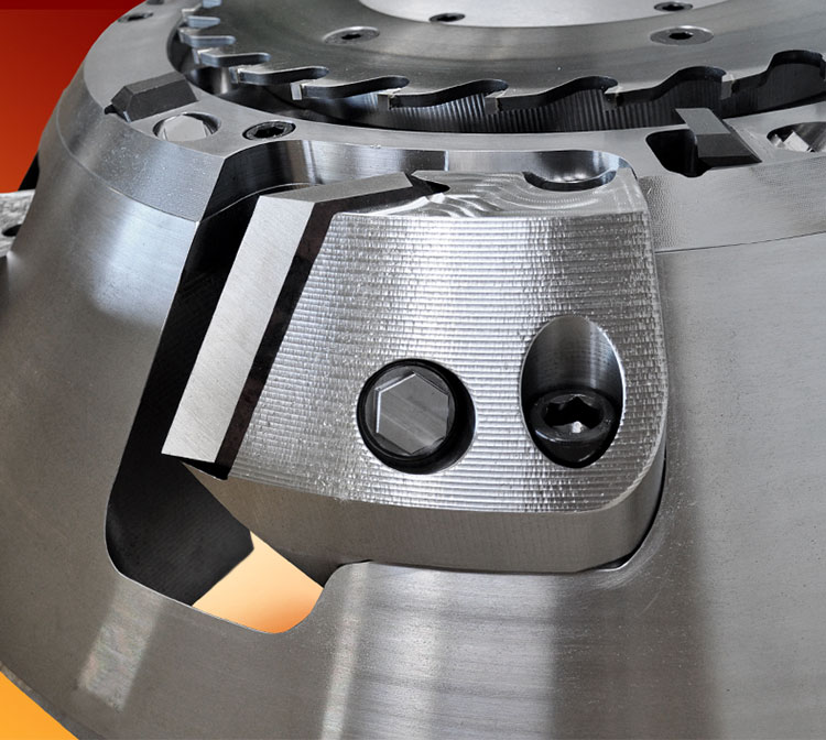 Unsere CANTERCUT Spanertrommel wird je nach zu zerspanender Breite mit bis zu 8 Stufen ausgelegt, wobei die Anzahl der Messer pro Stufe abhängig von Vorschub, Drehzahl und der gewünschten Hackschnitzellänge ist. Für eine optimale Holzführung stehen auf Wunsch gelagerte Führungsteller zur Verfügung.